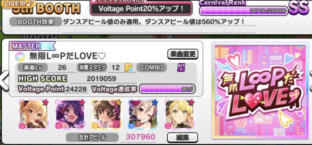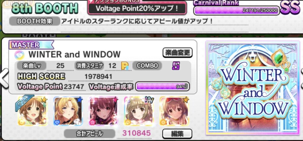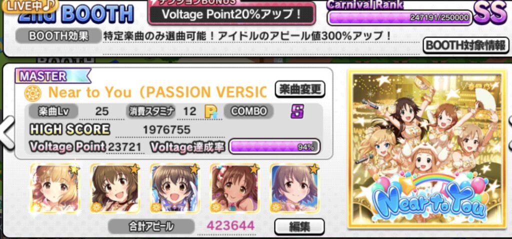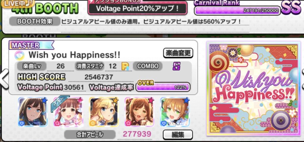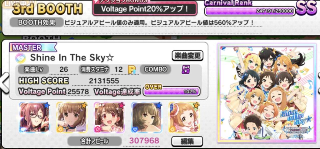 今回はイベント曲がないのと属性ブースが減ったのでやりやすかった感じです。