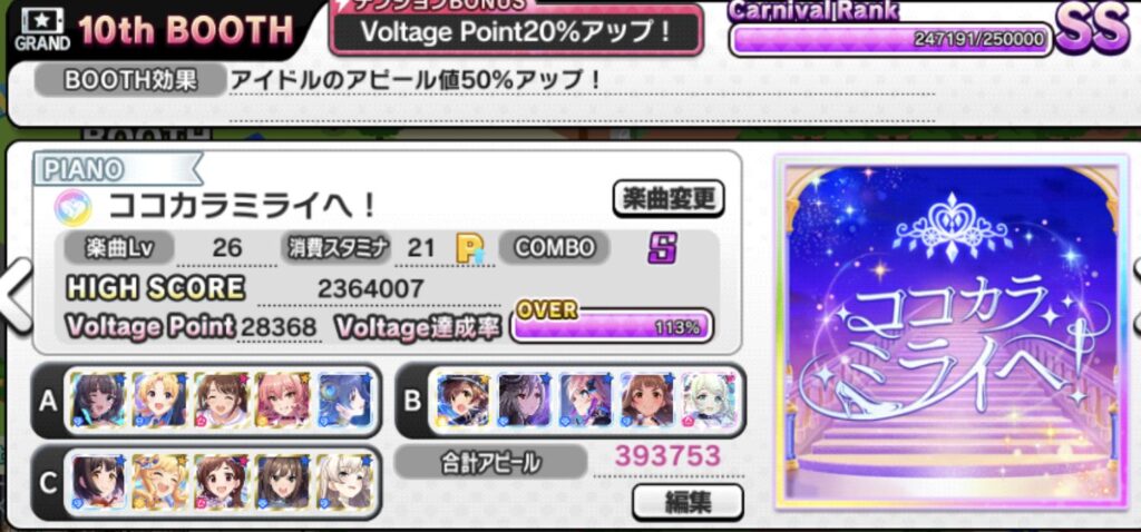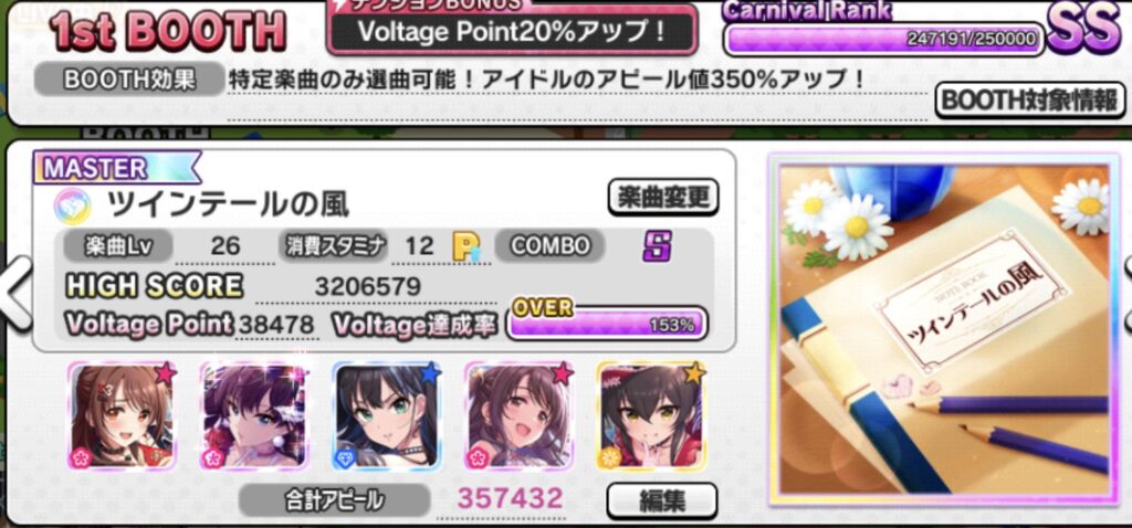 編成は前回と同じ。前回はイベント曲だったので今回のがスコアは高いです🖥️